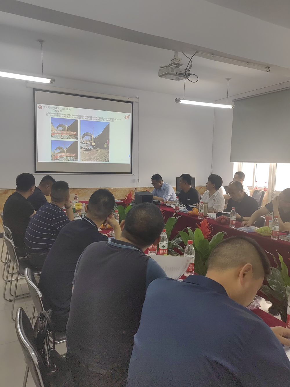 參觀過后,公司負(fù)責(zé)人對弘祥的目前發(fā)展?fàn)顩r,以及設(shè)備的技術(shù)改進等進行了詳細(xì)介紹。以往的鋼波紋管經(jīng)典工程案例通過PPT的形式呈現(xiàn)給客戶,雙方對此展開深入的交流和溝通。